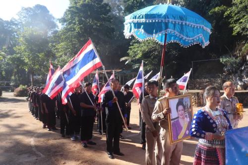 วันที่ 17 ธันวาคม 2568 นายสิทธิศักดิ์ วงศ์ชูแก้ว ปลัดอำเภอฝ่ายทะเบียนและบัตร รักษาราชการแทนนายอำเภอสองแคว เป็นประธานในพิธี พร้อมด้วยนางสาวโชติกา มินถาเจริญ พัฒนาการอำเภอสองแคว หัวหน้าส่วนราชการ เจ้าหน้าที่พัฒนาชุมชน เครือข่ายกองทุนแม่ของแผ่นดินระดับอำเภอ ผู้นำท้องถิ่น กำนัน ผู้ใหญ่บ้าน คณะกรรมการกองทุนแม่ของแผ่นดิน และประชาชนในพื้นที่ บ้านผาหมี หมู่ที่ 10 ตำบลนาไร่หลวง เข้าร่วมพิธีอัญเชิญและแลกเงินขวัญถุงพระราชทานกองทุนแม่ของแผ่นดิน ประจำปี 2568 กิจกรรมประกอบด้วย ขบวนแห่อัญเชิญเงินขวัญถุงพระราชทาน การแลกเงินขวัญถุงพระราชทาน การถวายราชสดุดี น้อมรำลึกในพระมหากรุณาธิคุณและถวายความอาลัย สมเด็จพระนางเจ้าสิริกิติ์ พระบรมราชินีนาถ พระบรมราชชนนีพันปีหลวง กล่าวปฏิญาณไม่ยุ้งเกี่ยวกับยาเสพติด และกฎชุมชนเข้มแข็ง ซึ่งนับเป็นกิจกรรมที่สร้างความภาคภูมิใจแก่ชุมชนและเสริมสร้างพลังความร่วมมือในการป้องกันและแก้ไขปัญหายาเสพติด โดยแนวทางสันติวิธี